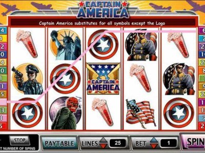 Captain America slot rappresenta in maniera efficace il leggendario personaggio statunitense che fa della giustizia e della libertà le sue ragion d’essere. E’ composta da 5 rulli ed un massimo di 20 linee di puntata, con il giocatore che prima di azionare gli spin deve scegliere il valore dei gettoni che può essere compreso tra € 0,01 fino ad arrivare ad un massimo di € 5. Ne consegue che usando tutte le linee di gioco, si effettua una puntata massima il cui valore è pari a € 100. Il payout garantito dalla slot machine Captain America è del 94,3% delle giocate effettuate nel lungo periodo