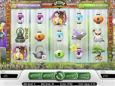 La slot machine online Geisha Wonders appartiene alla stessa famiglia di Tiki Wonders e Icy Wonders, con cui condivide la presenza di 2 jackpot progressivi che consentono di ottenere vincite consistenti. Nella fase classica di gioco, la vincita massima supera i € 250.000. Non abbiamo riscontrato trucchi slot machine che applicati a questo gioco consetono di aumentre le probabilità di realizzare vincite.