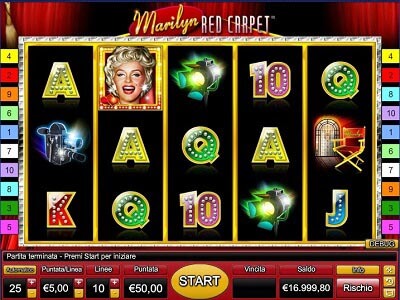 La slot machine Marilyn Red Carpet è chiaramente ispirata ad una delle più celebri e sensuali dive della storia, ossia Marilyn Monroe, icona di bellezza per molti uomini da almeno 50 anni. Anche grazie alla sua musa ispiratrice, il gioco risulta gioioso e piacevole alla vista come spesso accade per le slot machine Novomatic. La slot online Marilyn Red Carpet presenta una struttura costituita dai classici 5 rulli ed un massimo di 10 linee di puntata. Il giocatore prima di far partire i rulli deve selezionare il valore dei gettoni, tenendo conto che le puntate possibili vanno da un minimo di € 0,10 ad un massimo di € 50.