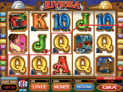 La slot machine Riviera Riches mette in primo piano un casinò in cui il giocatore può dar forma ad ogni vizio: belle donne, macchine d’epoca, whisky invecchiati e sigari.