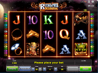 La slot machine Rumpel Wildspins è prodotta dalla software house Novomatic. Il gioco racconta una favola a colpi di magia, con protagonisti una rana, una fanciulla, il giovane Tremotino ed altre icone significative rappresentate da: l’oro, l’anello la collana.