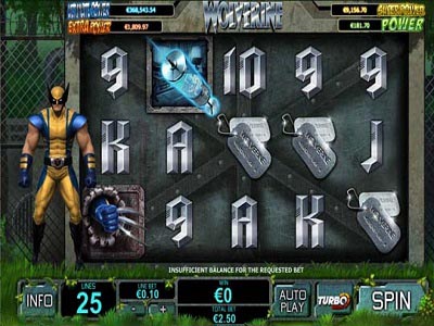 Wolverine slot machine oltre che della passione di molti giocatori per il gruppo Marvel, risente positivamente anche del successo ottenuto al cinema dal film omonimo, ben interpretato da Hugh Jackman. Wolverine è una slot machine Playtech la cui struttura si basa su 5 rulli e 25 linee di puntata. Il giocatore prima di azionare gli spin deve decidere quante linee utilizzare ed il valore del gettone, selezionandolo in un intervallo di valori compreso fra € 0,01 ed € 25. La puntata minima effettuabile è di € 0,25 mentre quella massima raggiunge € 625 con un payout di circa il 92% delle giocate realizzate.